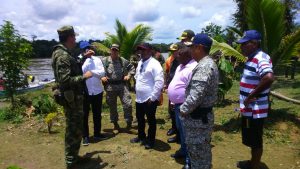El día de hoy acompañando de la cúpula militar el Gobernador del Chocó, junto al Secretario de Interior y de Gobierno, se desplazaron hasta el municipio del Litoral del San Juan, donde inicialmente realizaron un recorrido por la vereda de Carrá, lugar donde el pasado sábado se perpetuó una masacre por parte de integrantes del ELN que dejó un total de 5 muertos, un menor de edad herido, una persona desaparecida y 52 personas desplazadas (que corresponden al 98% de la población), quienes hoy se encuentran ubicadas en la cabecera municipal (Docordó).